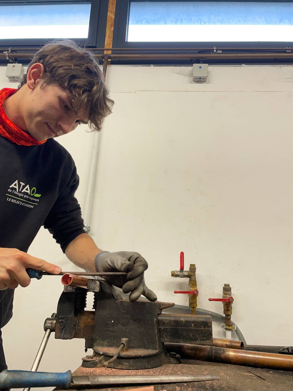 Formation de notre apprenti Baptiste au perfectionnement de l'assemblage des canalisations par soudage et brasage.