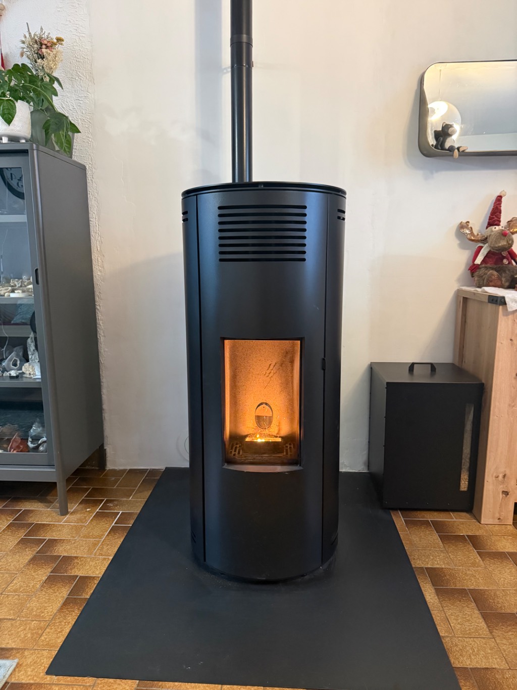 Pour répondre aux attentes du client, un poêle à granulés Red365 – modèle Minta Air 8 S1 a été installé. Ce type d’équipement offre une chaleur douce et homogène, tout en permettant une programmation adaptée au rythme de vie du foyer.