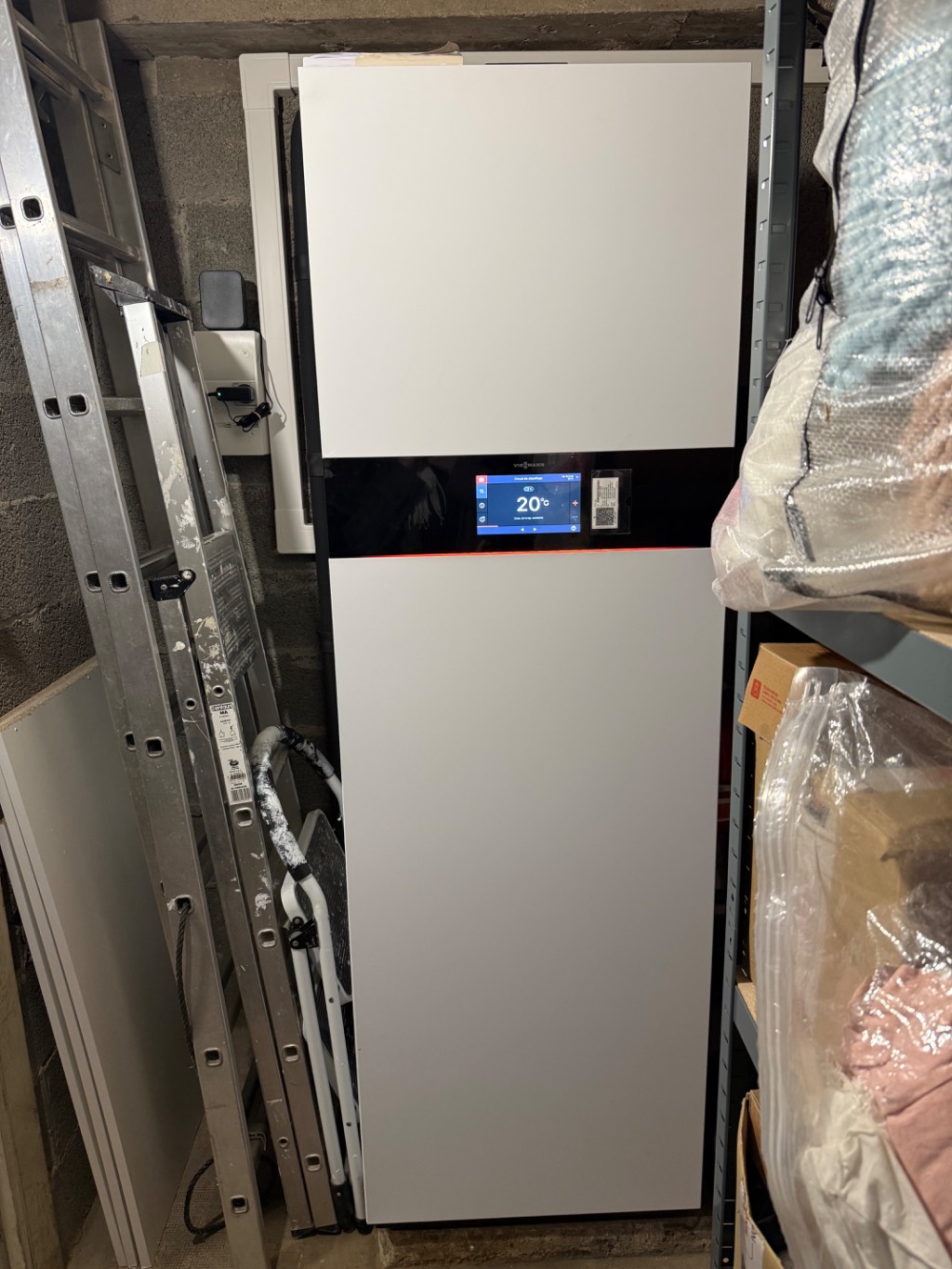 Le système installé est une pompe à chaleur air/eau Viessmann Vitocal 252-A, capable d’assurer à la fois le chauffage du logement et la production d’eau chaude sanitaire. Cette solution est parfaitement adaptée aux réseaux de radiateurs existants et permet de fournir une température de chauffage élevée, même en hiver.