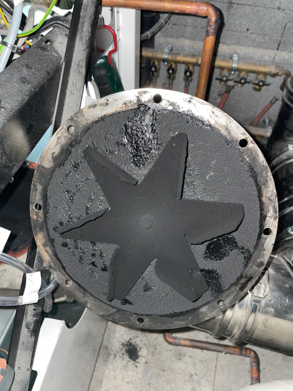 - Elle présente une dépression insuffisante qui pouvait être due à un encrassement. J'ai donc réalisé un entretien sur les différents éléments permettant de créer la dépression. Effectivement, elle était encrassé au niveau de son ventilateur des fumées.